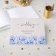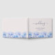 This beautiful wedding guest book features a row of blue roses on both the front and back with elegant calligraphy font.