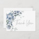 Dusty Blue Roses Flowers Script Wedding Thank You Card