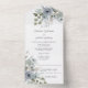 Dusty Blue Roses on White All In One Invitation