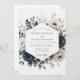 Evoke timeless romance with this elegant botanical design. A sophisticated color palette of dusty blue, creamy white, and warm russet creates a moody yet beautiful aesthetic. Softly painted peonies, anemones, and delicate leafy sprigs are artfully arranged for a truly stunning composition.
