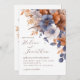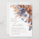 Dusty Blue Rust Watercolor Floral Elegant Wedding Invitation