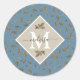 Dusty Blue Rustic Brown Leaves Monogrammed Classic Round Sticker