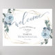 Dusty Blue Rustic Floral Calligraphy Welcome Poster