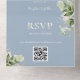 Dusty Blue Rustic Greenery QR Code Wedding All In One Invitation
