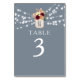 Guide your guests with elegance using this dusty blue wedding table number card featuring glowing string lights and romantic burgundy and blush florals in a mason jar. Designed for rustic or outdoor weddings, it makes a stylish addition to any reception table.