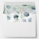 These envelopes match the wedding invitations found in the Dusty Blue & Sage Green Eucalyptus Wedding Collection. The inside is a pattern of eucalyptus leaves in dusty blue and sage green. Don't forget to change the address on the back top flap. If you don't want an address, simply delete the text.