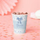 Personaiize this elegant Blue Satin Bow Baby Shower paper cup, perfect for any sophisticated celebration. This exquisite cup features a delicate white lace design, accented with an elegant blue satin ribbon bow. Pearls adorn the cup, adding a touch of timeless glamour. Set against a feminine dusty blue background, this cup exudes a regency style reminiscent of the beloved Bridgerton series. Think bows, satin ribbons, pearls, and elegant vintage lace – if you love Bridgerton, you will adore these baby shower paper cups. The perfect addition to your elegant, vintage-inspired Baby Shower Party, Lunch or Picnic.