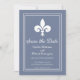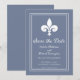 Elegant and simple Wedding save the date invite featuring a fleur de lis against a dusty blue background. This design is a unique choice for announcing a modern wedding. Easy to customise with your wedding details. Click "Customise It" to find more personalisation options.