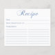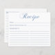 This dusty blue elegant script bridal shower recipe card is perfect for any shower. It has lots of lines for ingredients and the entire back is lines for directions. Include one or two recipe cards with every shower invitation asking the guests to share their favourite recipe(s) with the bride. You'll be amazed at how varied the type of recipes will be and how grateful the bride will be to have a set of tried and true recipes to cook for her beloved groom.