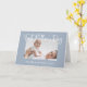 This lovely happy Mother's Day greeting card for the first time mother features a soft, dusty blue background with white modern script typography that says "First Mother's Day." Add a photo of her and the baby, with room to personalise with names and year.