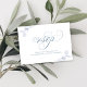 Modern elegant wedding RSVP card featuring soft dusty blue tones, romantic calligraphy script, and delicate botanical accents. This minimalist design includes a scannable QR code for easy online RSVP, perfect for streamlining your wedding planning. The clean, timeless layout pairs beautifully with classic, garden, and dusty blue wedding themes. Personalize with your wedding website and event details for a cohesive stationery suite.