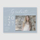Yay! Your middle school, high school, college/university, tech school, or graduate program student did it and is graduating! Celebrate one of their life's precious moments and send out this graduation announcement magnetic card. The magnet features a simple, elegant modern minimalist style with beautiful calligraphy script on a dusty blue background and the graduate's photo. Just customise and replace the text and photos in the personalisation box.