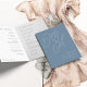 A beautiful typography based wedding program card featuring your initials in oversized script lettering on the front cover, in tone on tone shades for a watermark effect. Personalize with your ceremony details and wedding party, and add additional custom text to the back. Our Dusty Blue colorway is an elegant mix of ethereal blues, with white and blue-gray lettering on a dusty medium blue background.