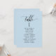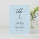 Help your guests find their table with this elegant dusty blue modern seating plan cards with guests names. Double sided cards so guests can look from both, front or back for their names. Clear space all around giving you the liberty to use clips or punch hole for hanging displays, or use table holder/frame. Dusty blue background and black text. Modern hand written calligraphy details. Several colour options. Have all table numbers in same colour or mix colours according to your event's colour theme. Part of our "Dusty Rose and Dusty Blue Event Signs and Products" collection with a variety of coordinating products available, including table number cards and menus.