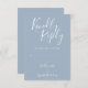 This elegant dusty blue and white RSVP card can be personalized in chic white lettering. You can add additional information such as menu choice on the reverse. Perfect for weddings, bridal showers, baby showers, baptisms, engagement parties, anniversary celebrations, graduations, birthdays and other special events throughout the year! Designed by Thisisnotme©