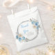 Beautiful birthday party favor bag with a dusty blue and silver faux glitter frame with floral flower arrangements. Perfect for a birthday party. The words can be changed to suit your own details or requirements