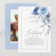 Dusty Blue Silver Floral Engagement Party Photo Invitation