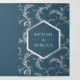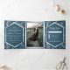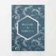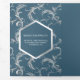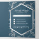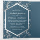 Dusty Blue Silver Flourish Swirl Wedding Photo Tri-Fold Invitation