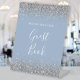 Dusty Blue Silver Glitter Wedding Guest Book Pedestal Sign