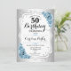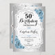 Dusty Blue Silver Photo Elegant 50th Birthday Invitation