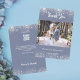 Celebrate your special day and express your heartfelt gratitude with our Custom Photo Wedding Cards, elegantly designed with a sophisticated and trendy dusty blue background decorated with faux silver glitter. Perfect for sharing your favourite wedding memories, these cards are both stylish and personal, offering a unique way to thank your guests. Personalise and add your photo and thank you note. White text.