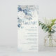 Dusty Blue Silver Rose winter floral wedding menu featuring elegant calligraphy script modern watercolor flowers white roses and botanical boho design