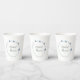 Add elegance to your wedding shower event with these white paper cups that feature a trendy, dusty blue colour, simple heart wreath design with the future bride and groom's names printed in grey, stylised script on one side of cup. Edit and replace initials with your own.