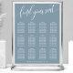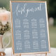 Welcome your guests with this elegant dusty blue wedding seating chart. Featuring a minimalist design with modern script that says find your seat, this seating chart is perfect for a sophisticated and stylish wedding. The soft colour and clean layout provide a refined and organised look, ensuring your guests can easily find their seats. Customise with your names and table arrangements to create a unique and cohesive addition to your wedding decor. This seating chart accommodates up to 12 tables, making it ideal for a well-planned and elegant celebration.