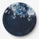 Dusty Blue Slate Navy Floral Botanical Wedding Pap Paper Plate
