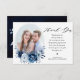Dusty Blue Slate Navy Floral Botanical Wedding Thank You Card