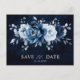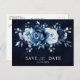 Dusty Blue Slate Navy Floral Wedding Save the Date Postcard