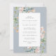 This elegant wedding invitation features a beautiful watercolor border of blush lilies, dusty blue wildflowers, and sage leaves on a dusty blue background. The back is dusty blue and the text is dark grey. This is part of the Spring Lilies collection.