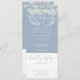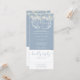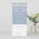 An all-in-one wedding invitation featuring pretty string lights and elegant typography on a dusty blue background. The invitation includes an RSVP card that can be cut off and guest information details. Designed by Thisisnotme©