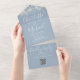 Dusty Blue String Lights QR Code Monogram Wedding All In One Invitation