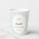 Dusty Blue Stripes Elegant Vintage Boy Baby Shower paper cups with a cute blue bow
