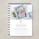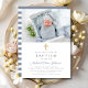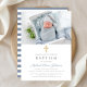Custom Text Dusty Blue Stripes Cross Photo Boy Baptism Invitation.