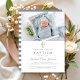 Dusty Blue Stripes Cross Photo Boy Baptism Invitation