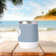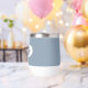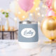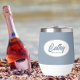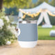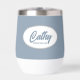 Gift your wedding bridesmaid with this trendy and personalised, stainless steel wine tumbler with her name in stylised script inside a white, oval design. Background colour and script is a dusty blue colour. Perfect for a bachelorette party as well! Personalise your wine tumbler by editing and replacing bridesmaid name with desired name. Available in many, popular bridesmaid wedding colour schemes.
