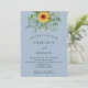 A dusty blue background decorated with sunflowers, eucalyptus greenery. Personalise and add your names and party details.