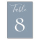 Chic dusty blue table number card, designed to match our Dusty Blue Botanical Collection.