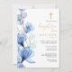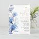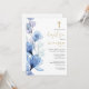 Dusty Blue Transparent Floral Monogram Baptism Invitation