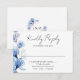 This elegant dusty blue transparent floral RSVP card with your details set in chic typography with your monogram initals on the reverse. Designed by Thisisnotme©