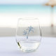 Dusty Blue Tropical Palm Trees Beach Wedding Stemless Wine Glass