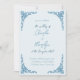 This wedding invitation features a delicate and romantic dusty blue hue paired with vintage-inspired design elements. The intricate details, soft colour palette, and classic fonts create an invitation that exudes a sense of nostalgia and romance, evoking the elegance of bygone eras.