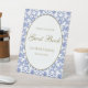 This dusty blue vintage-style patterned design with fancy gold writing is elegant, traditional and timeless. Perfect for pastel blue themed weddings.