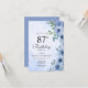 Dusty Blue Watercolor Floral Chic 87th Birthday Invitation