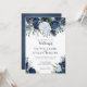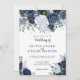 A rustic watercolor design of large roses in gorgeous shades of blue, white and navy on a pure white background. The card reverses to a rich navy colour with a small floral arrangement in the centre. You can add your personal details by going to the customise menu. This is part of an elegant wedding suite that can be fully personalised.