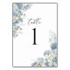 This table number is part of a coordinated dusty blue watercolor collection.