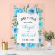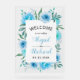 Dusty blue watercolor flowers wedding welcome acrylic sign