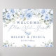 PixDezines Modern Calligraphy Font with DIY color, a Seat Yourself Sign. Dusty Blue Watercolor Roses seating chart with DIY background color.